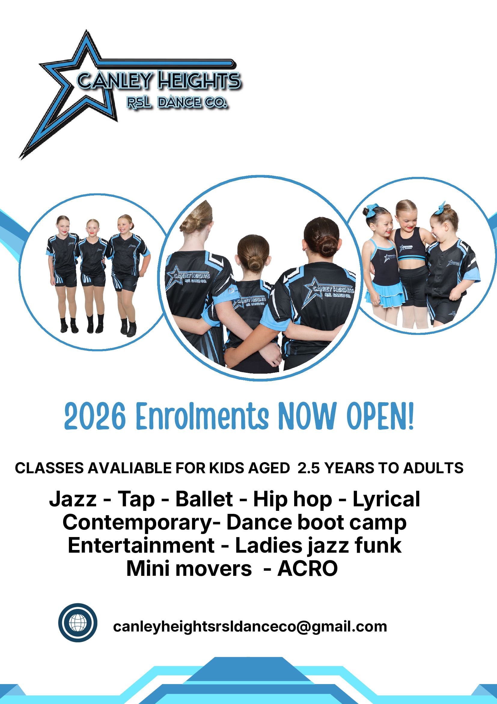 Email: canleyheightsrsldanceco@gmail.com.