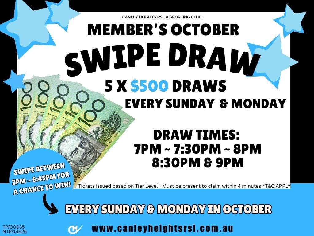 Member Promotion – $1000 Draws at 7pm & 8pm (Swipe 2pm – 6:45pm)