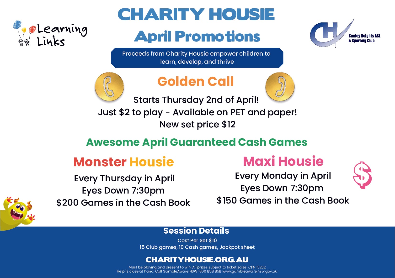Charity HousieEvery Monday & Thursday from 7:30pm