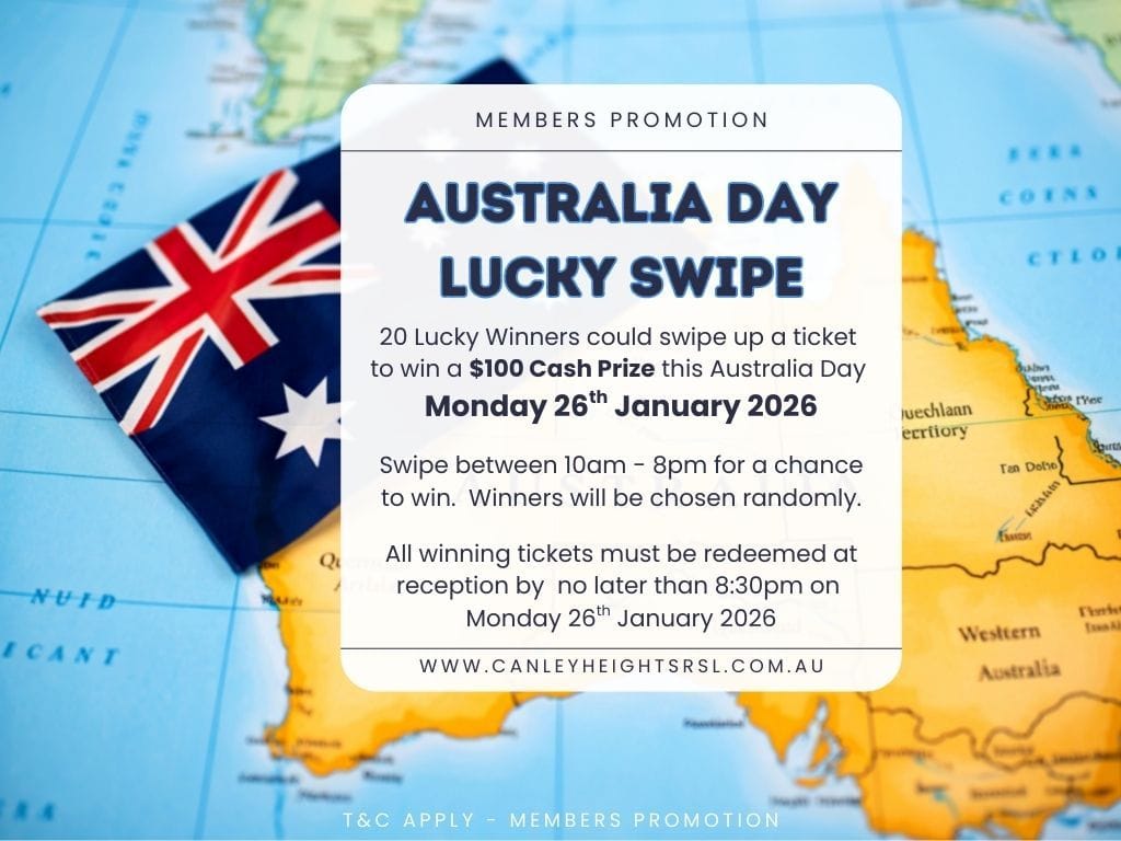 Members Promotion – Swipe between 10am – 8pm for a chance to win.
