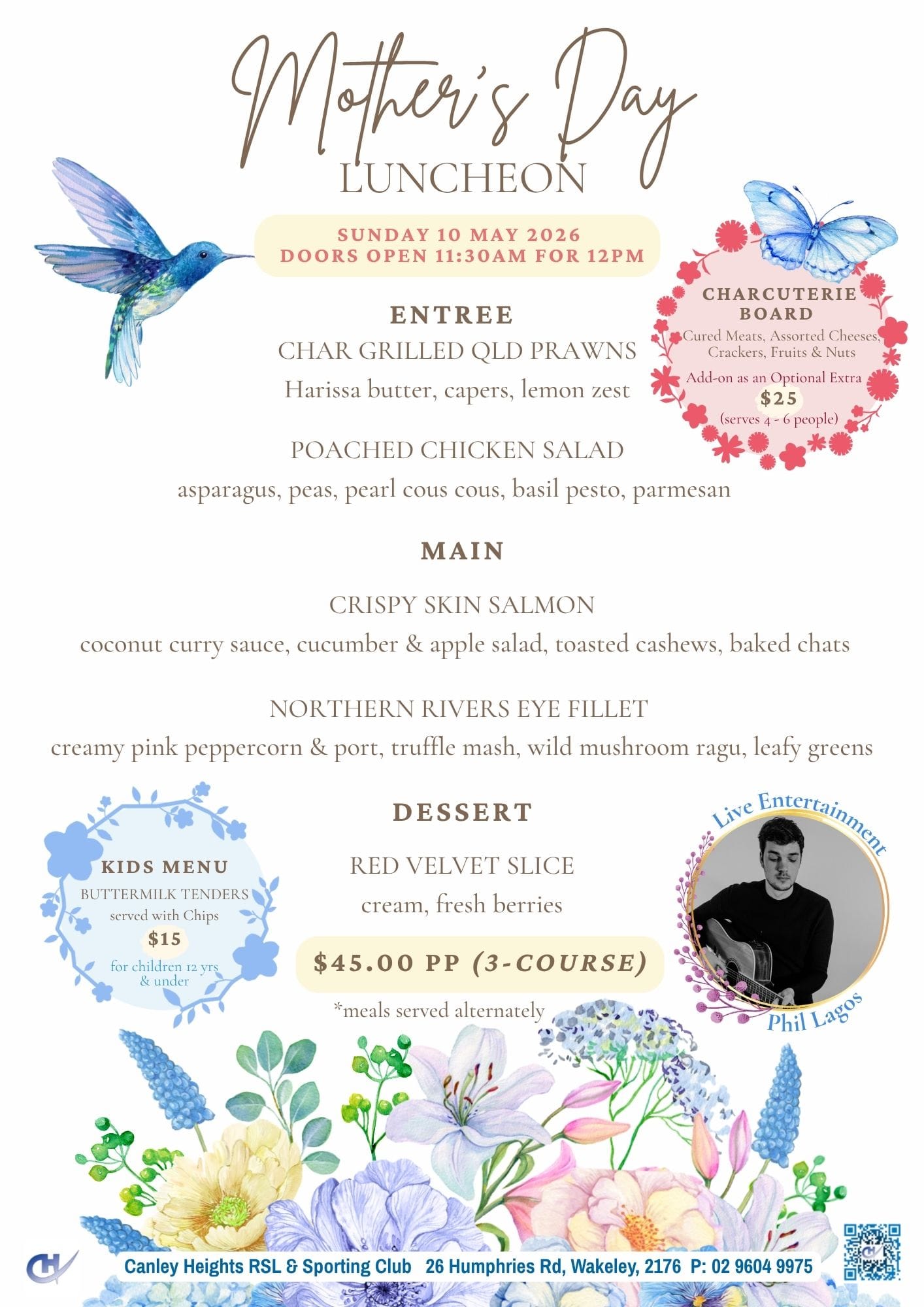 Doors Open 11:30am – 3 course luncheon with live entertainment